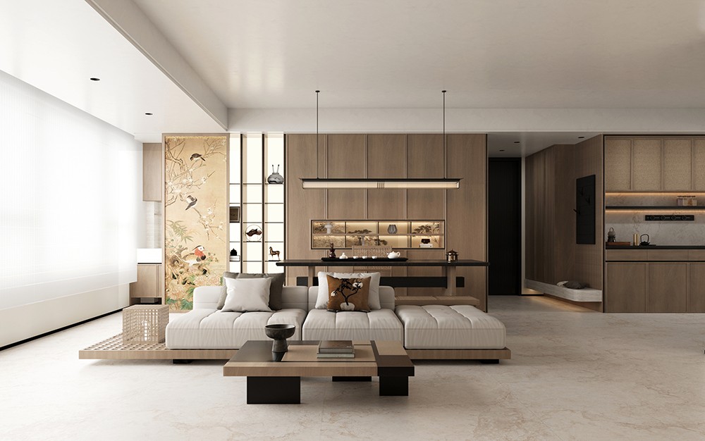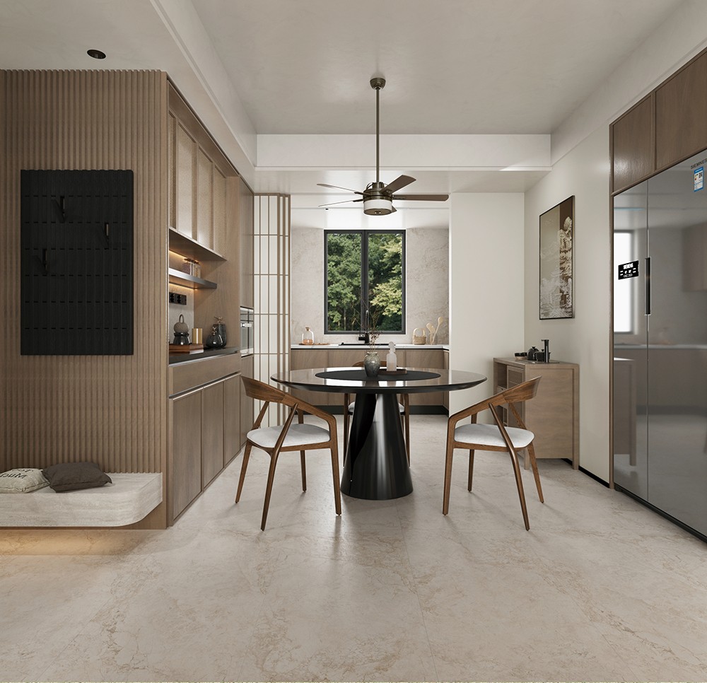復古淡雅的奶杏色,賦予空間寧靜的歲月感與深遠的故事感,細膩的紋理仿佛記錄了地質變遷與時間沉淀的印記,重現自然界的經典之美。