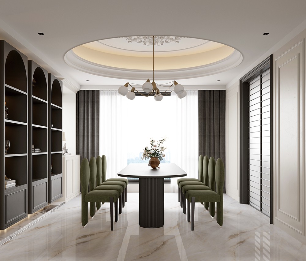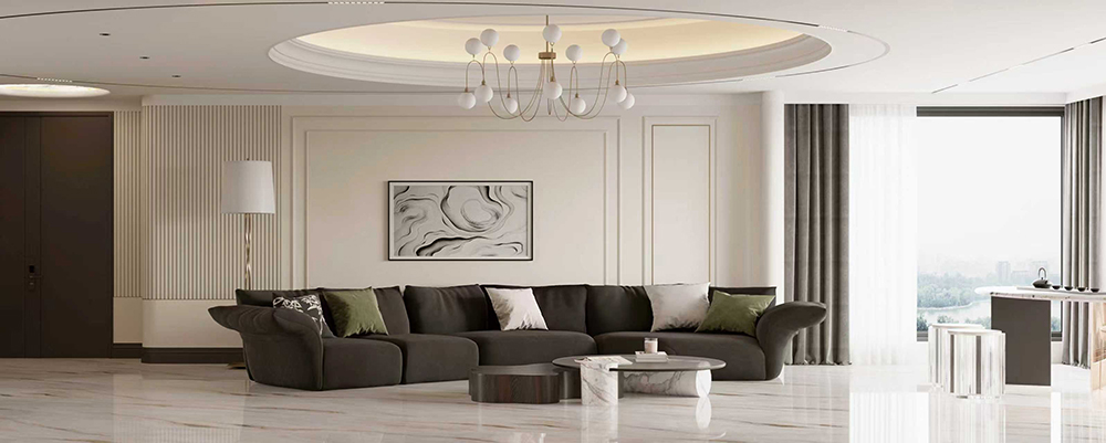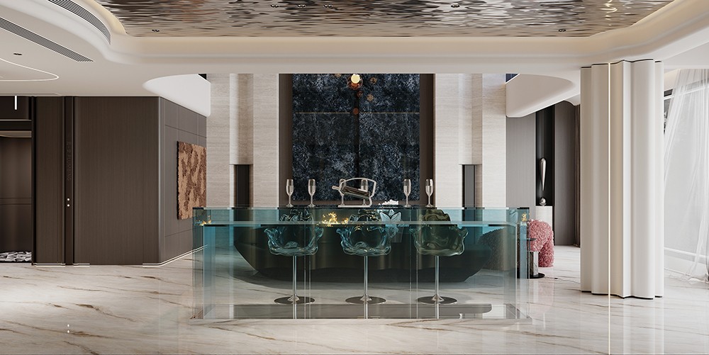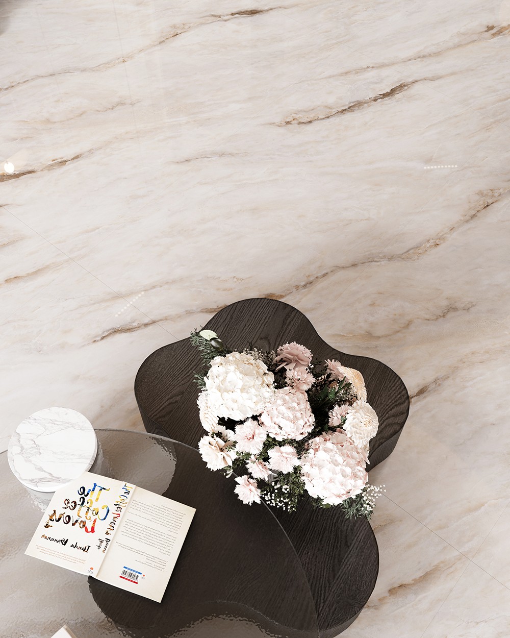 冷調(diào)基底蘊(yùn)冰晶之韻,米棕紋理漾晨光暖意,彩晶干粒勾勒冬去春來的含蓄漸變。