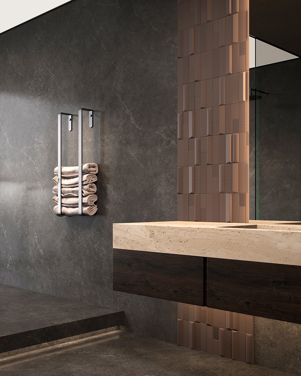靈感源于山石的自然形態,起伏間仿若山巒疊嶂,偶爾穿插的白紋如同山脈脊梁,增添了幾分靈動與層次。